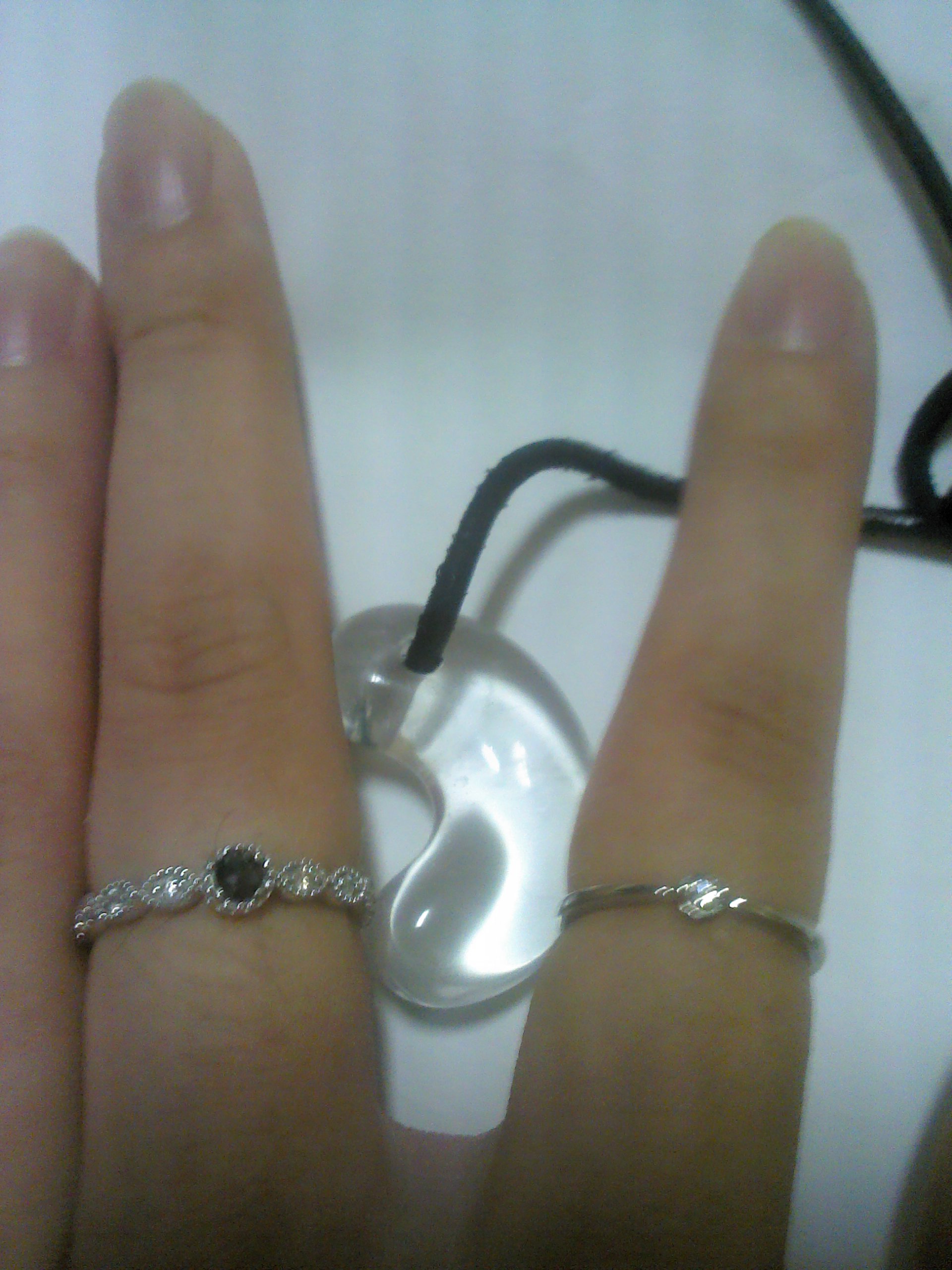 改めて写真の説明。中指にしてるのがブラックダイヤで、真ん中がレムリアンシードの勾玉、人差し指がダイヤの一粒リングです。なんか、「1万円」とか値段で呼ぶのって品がないなと自分で思ったので、これからはブラックダイヤとダイヤと呼ぶようにします。
